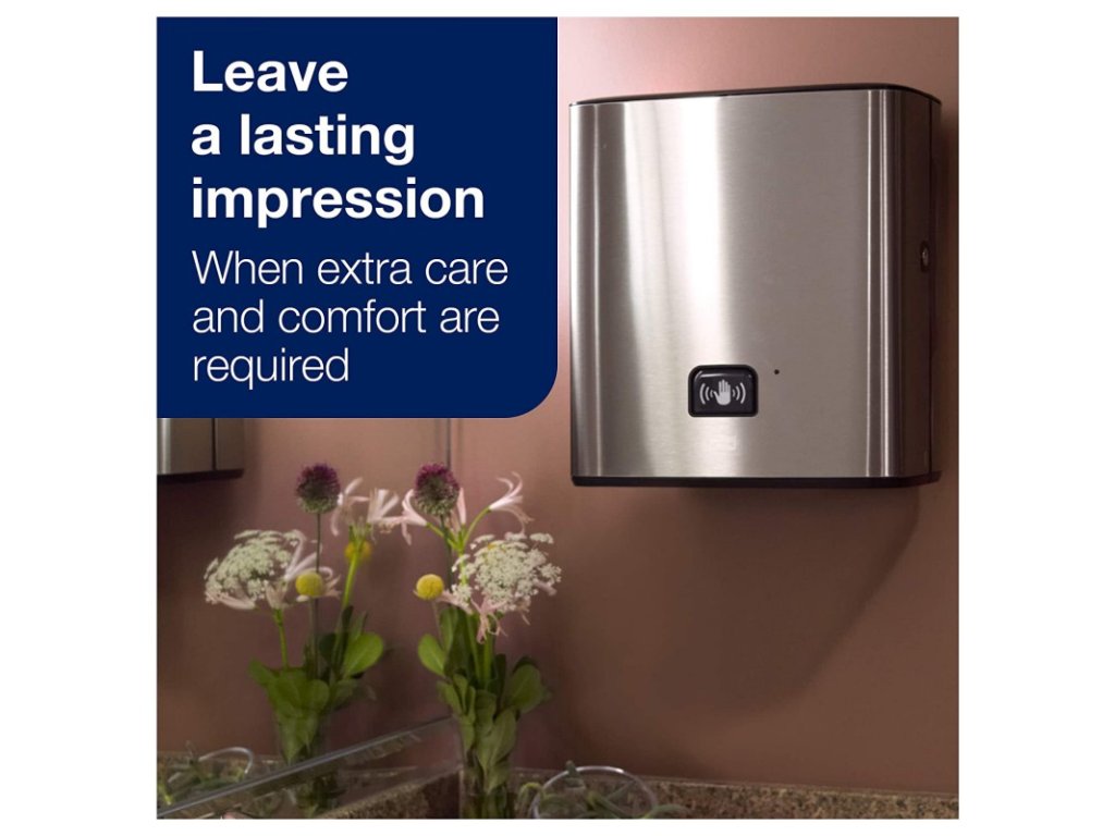 - Bezdotykové dávkování po jednom útržku snižuje spotřebu a zlepšuje hygienu. Zvolte krásný a elegantní design s řadou Tork Image Design.