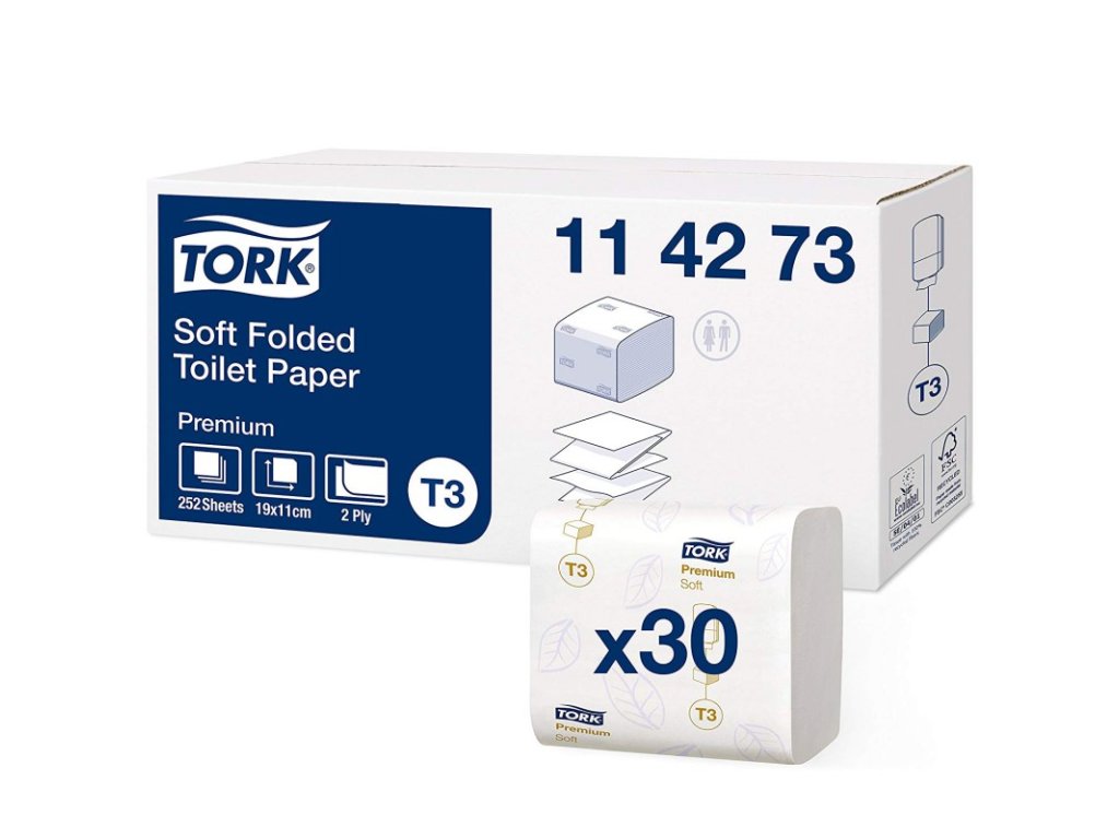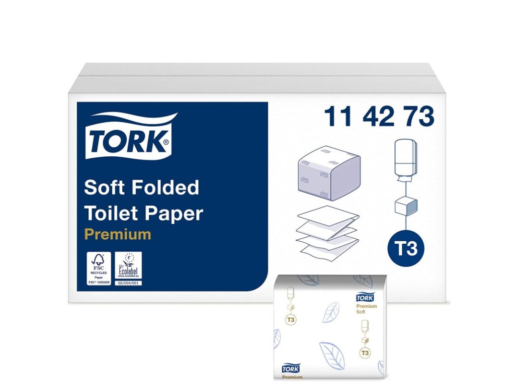 Tork Folded jemný toaletní papír v kvalitě Premium se vyznačuje prvotřídním vzhledem, je měkký na omak a zároveň nabízí maximální funkčnost. Tento systém je ideální pro provozovny s nízkou až střední návštěvností, zejména ve zdravotnictví a v sektoru hotelnictví, restaurací a cateringu.