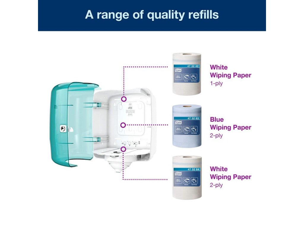 - Tento hygienický a odolný systém se snadno používá a v porovnání se systémem Tork® se středovým odvíjením snižuje spotřebu až o 37 %.