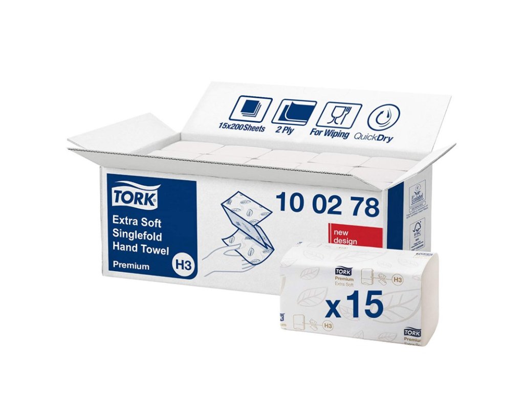 - Tork Premium Extra Soft Singlefold Hand Towels 100278 - H3 Premium Folded Paper Towels with High-Absorbency - 2-Ply, White - 15 x 200 Sheets