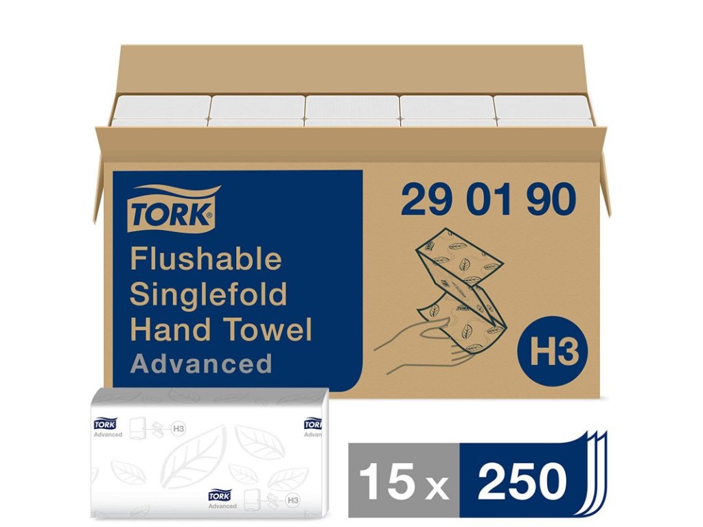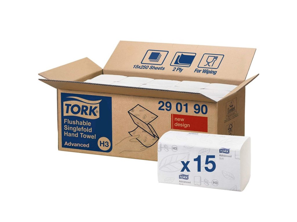 - Tork Flushable Singlefold Hand Towels Advanced 290190 - H3 Advanced Folded Paper Towels for Singlefold Dispenser - Absorbent, Tear-Resistant, 2-Ply, White - 15 x 250 Sheets
