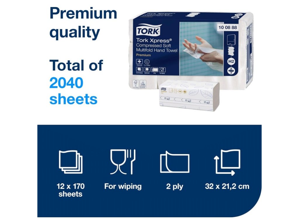 Tork Xpress 100888, jemné papírové ručníky Multifold Premium bílé, H2 - náhrada 100288