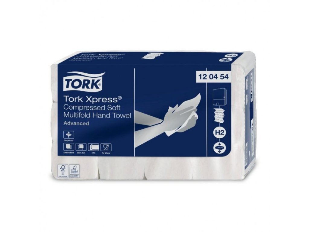 - Tork Xpress Multifold Hand Towels 120454 - H2 Advanced Folded Paper Towels for Dispenser - Absorbent, Tear-Resistant, Large, 2-Ply, White - 12x200