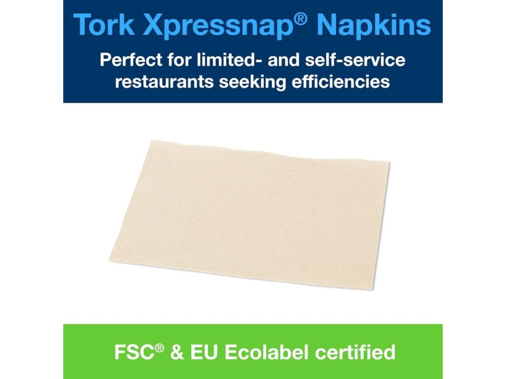 - Jednovrstvé přírodní ubrousky do zásobníku Tork Xpressnap® jsou ideální pro podniky s velkou návštěvností, které dbají na provozní náklady.