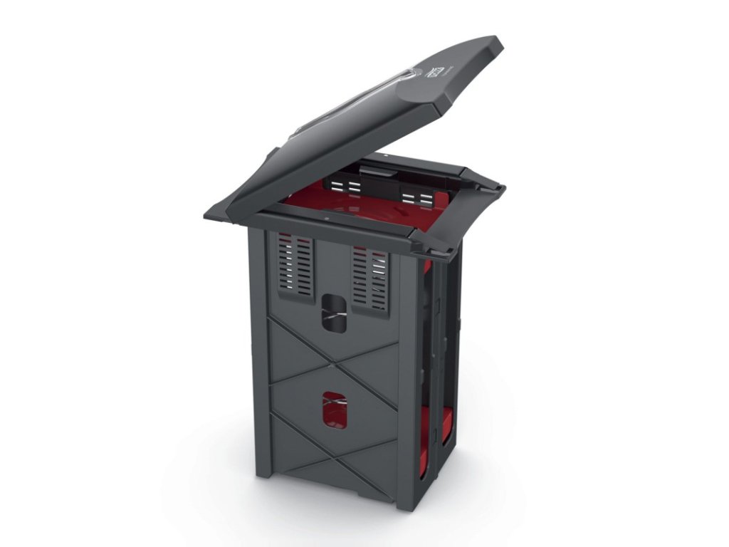 - Bezproblémová instalace – zásobník se dodává předem smontovaný a zasune se do výřezu bez potřeby utěsnění nebo přichycení páskou.