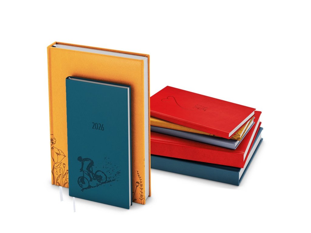 - Informační stránky: osobní údaje, přehledný kalendář 2026 a 2027, měsíční plánování 2026, plán dovolených 2026, česká a slovenská křestní jména, daňový kalendář CZ/SK 2026, mezinárodní svátky, důležitá telefonní čísla, roční plánovací kalendář CZ/SK 2026, místo pro poznámky, přední předsádka - mapa CZ/SK