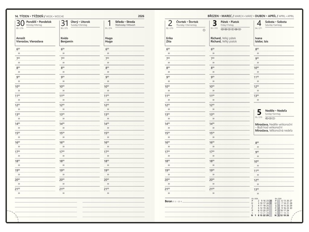 • Dny a měsíce ve 4 jazycích: CZ, SK, EN, DE