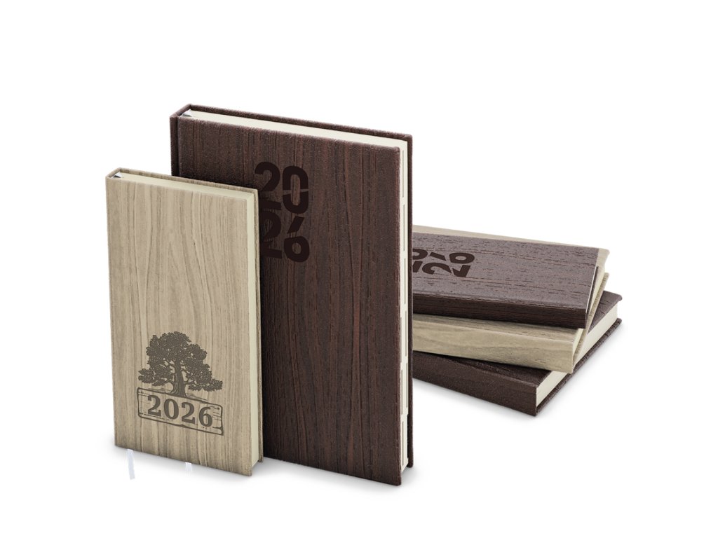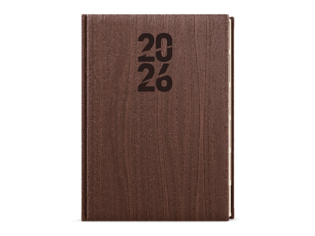 TÝDENNÍ DIÁŘ A5 OSKAR - WOOD HNĚDÝ 2026, KRÉMOVÝ PAPÍR