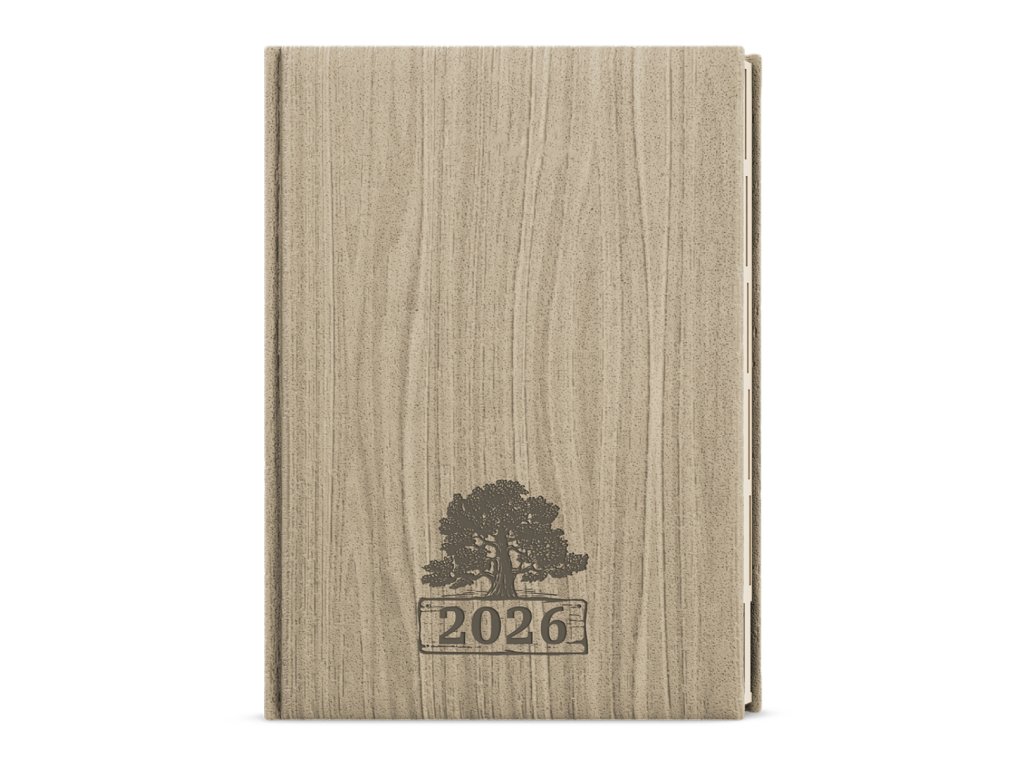 TÝDENNÍ DIÁŘ A5 OSKAR - WOOD SVĚTLE HNĚDÝ 2026 - KRÉMOVÝ PAPÍR