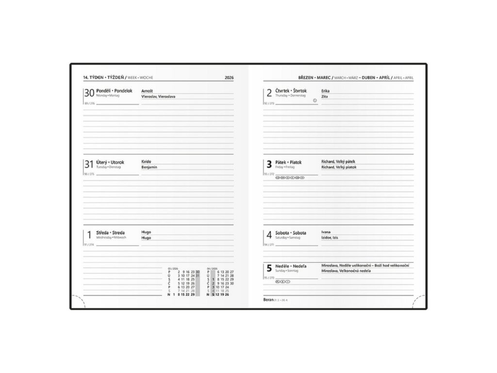 • Dny a měsíce ve 4 jazycích: CZ, SK, EN, DE