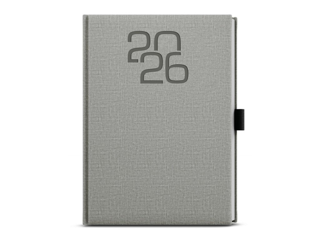 TÝDENNÍ DIÁŘ OSKAR A5 FABRIC ŠEDÁ S POUTKEM 2026 - BTO27