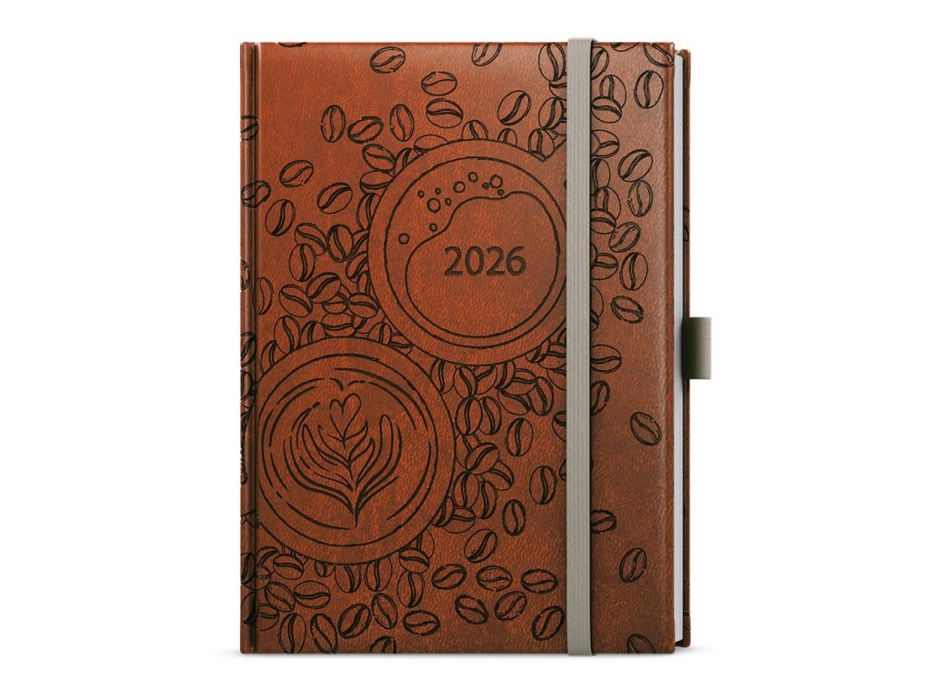 TÝDENNÍ DIÁŘ S GUMIČKOU B6 PROKOP - VIVELLA S RAŽBOU 2026 - HNĚDÁ - MOTIV KÁVA