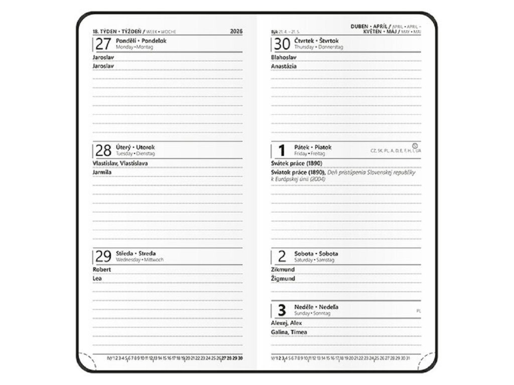 •Dny a měsíce ve 4 jazycích: CZ, SK, EN, DE