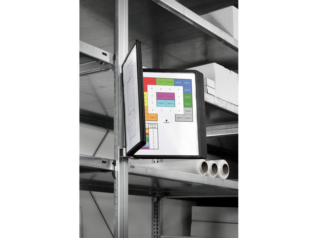 - Nástěnný systém - Magnetický nástěnný kovový držák a 10 tabulemi na dokumenty. S kolíkovou mechanikou pro snadnou výměnu.