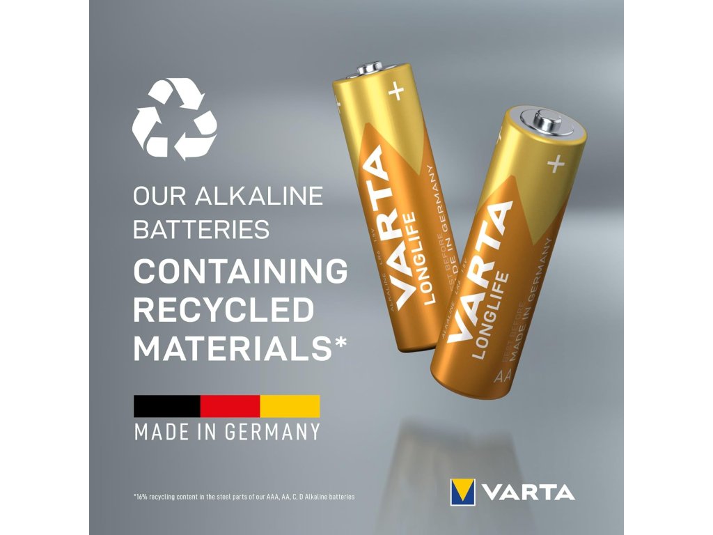 VARTA Longlife AA LR6 1,5 V – alkalické baterie pro nízký odběr, multipack 10 ks