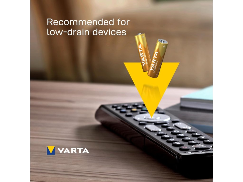 Baterie VARTA Longlife AA jsou navrženy pro přístroje, které vyžadují dlouhodobé a stabilní napájení bez časté výměny baterií. Jsou optimální volbou tam, kde zařízení běží trvale, ale s nízkým odběrem.