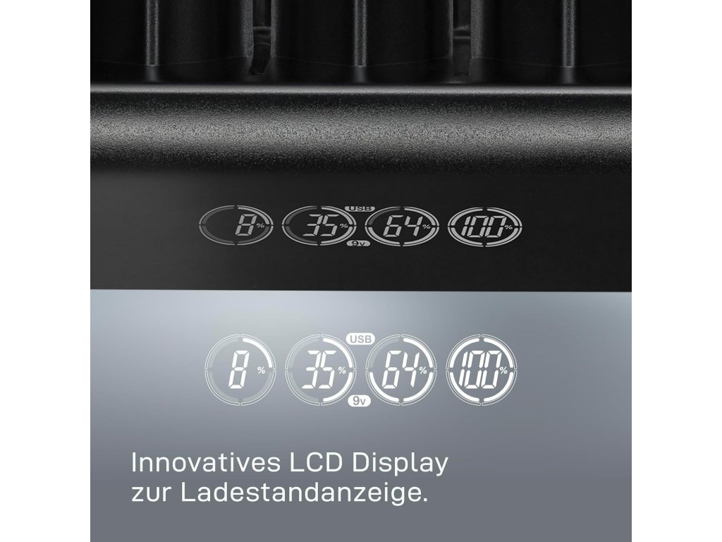 ● přehledný LCD displej usnadňuje kontrolu stavu baterií