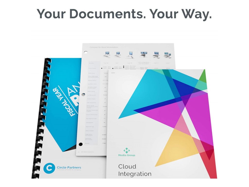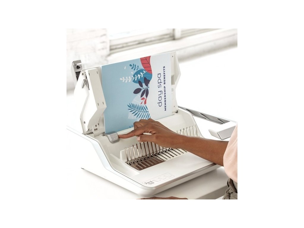 Systém "3 v 1" - vázání, sešívání a speciální děrování v jednom stroji Lyra™. Elegantní a sofistikovaný design se hodí k modernímu pracovnímu prostředí.