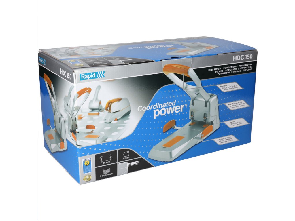 Velkokapacitní děrovačka Rapid Supreme HDC150, výkon 150 listů, stříbrná/oranžová