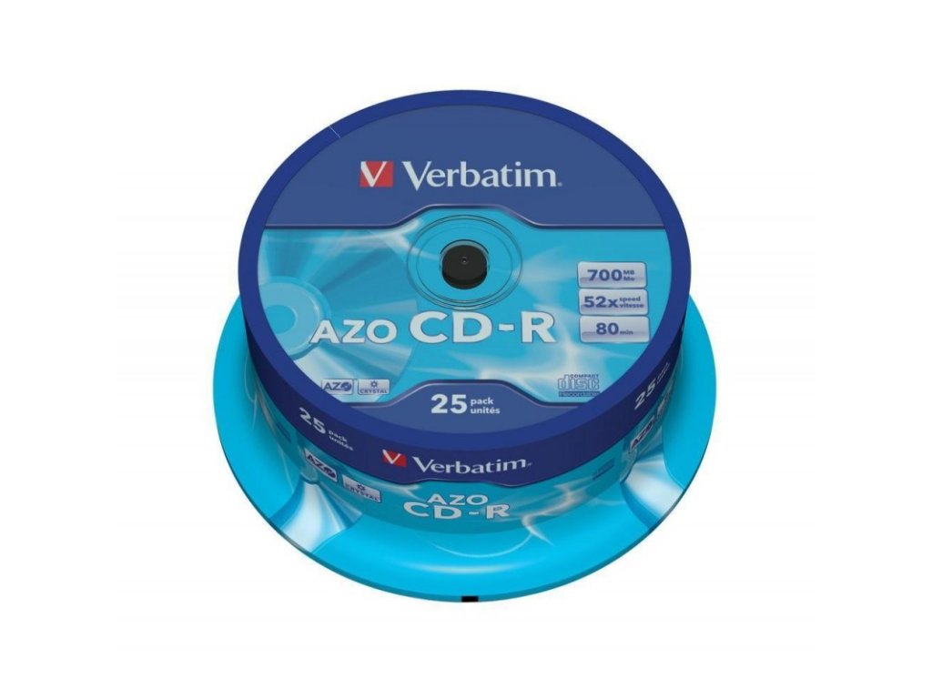 - CD-R 700MB, 80min. , 52x, DLP Crystal AZO, Verbatim, 25-cake