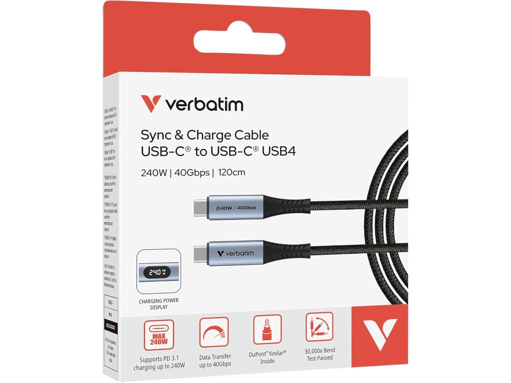Verbatim USB-C / USB-C kabel 1,2 m 240 W s displejem černý