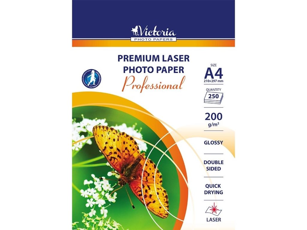 VICTORIA Professional fotografický papír lesklý A4, 200 g/m², oboustranný, pro laserové tiskárny, 250 listů