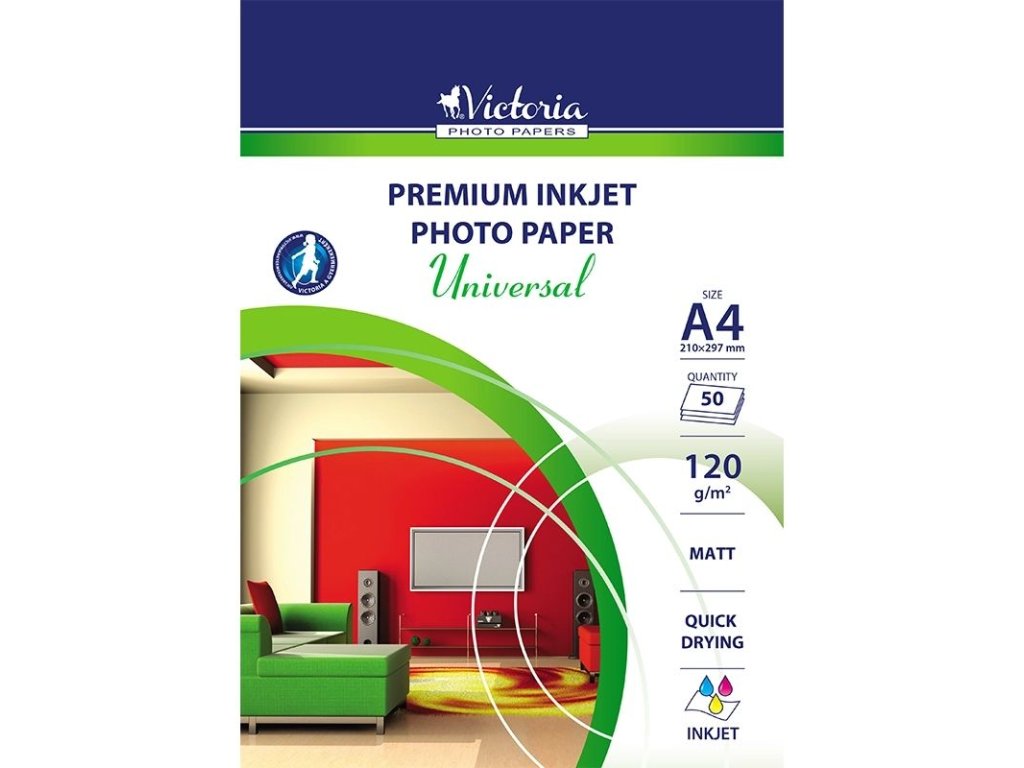 VICTORIA Universal fotografický papír matný A4, 120 g/m², pro inkoustové tiskárny, 50 listů