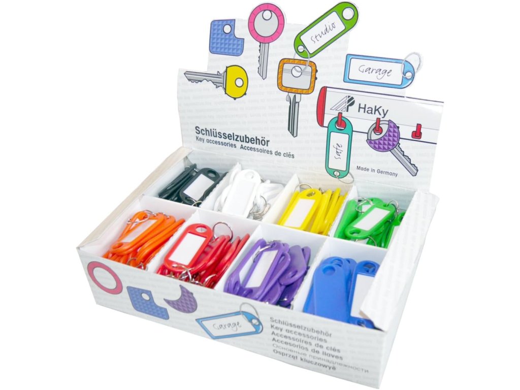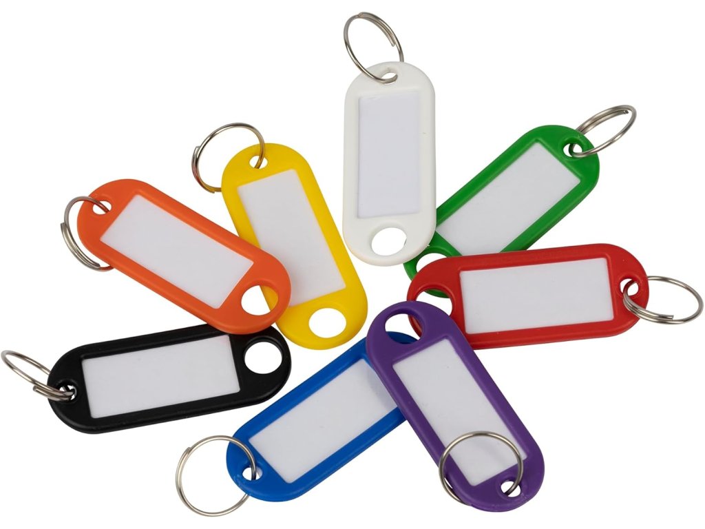 ● Plastové jmenovky s kovovým kroužkem pro bezpečné uchycení klíčů
