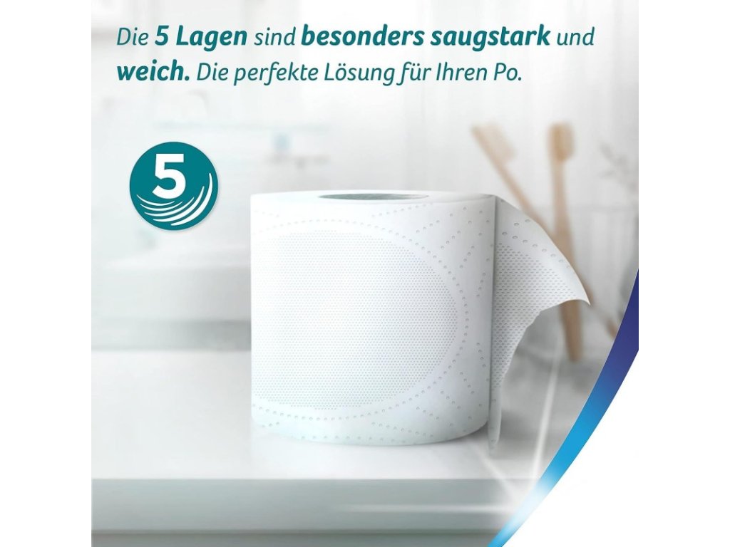 - 5 vrstev zaručuje nejen odolný toaletní papír, ale také extrémně měkkou a silnou vrstvu.