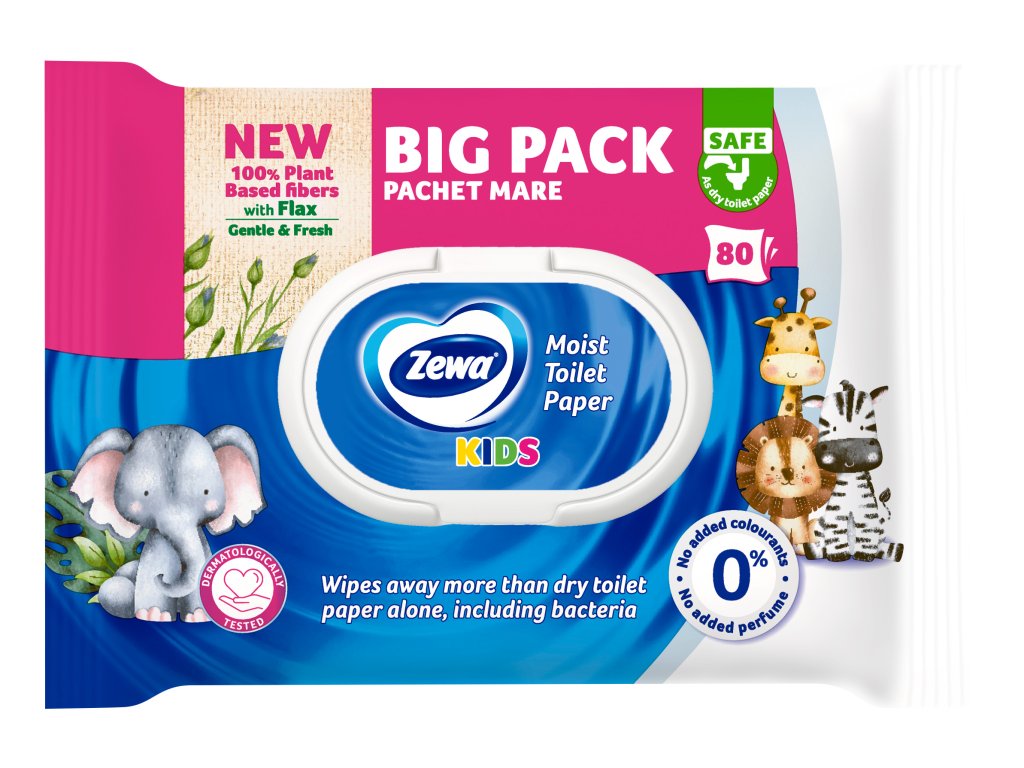 - Vlhčený toaletní papír Zewa Moist Kids je navržen tak, aby byl jemný k dětské pokožce a pomohl dětem se snadněji naučit jak se o sebe na záchodě správně postarat. Je vhodný pro děti od 3 let.